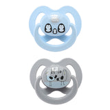 BabyNova sutter, grå og lyseblå med motiver, anatomisk silikone / naturgummi, 18+ mdr. 2 stk.